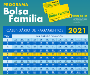 A Secretaria Nacional de Renda de Cidadania do Ministério da Cidadania divulgou, nesta segunda-feira (11), o calendário oficial de pagamentos do Bolsa Família para 2021.