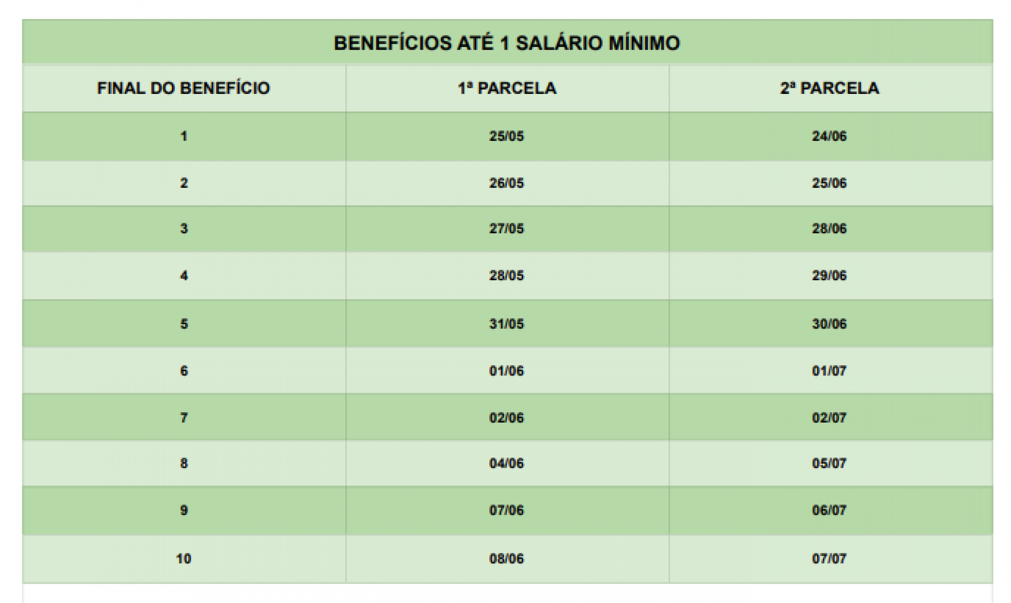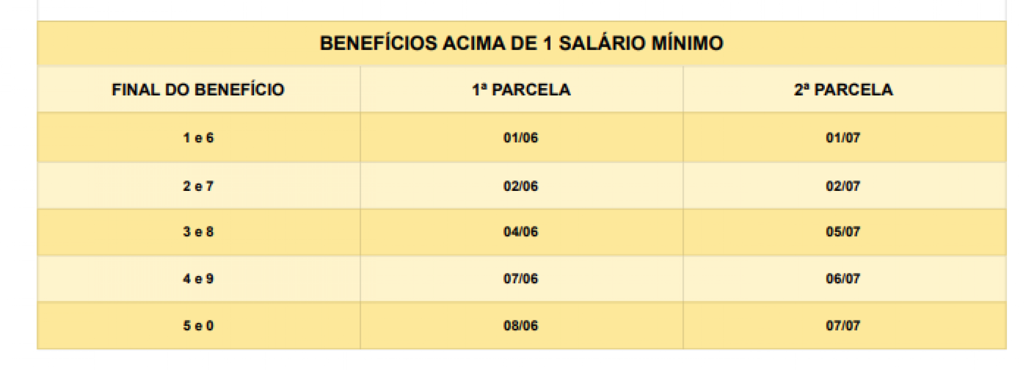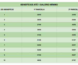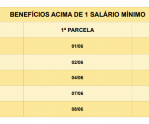 Para aqueles que recebem um salário mínimo, o depósito da antecipação será feito entre os dias 25 de maio e 8 de junho, de acordo com o número final do benefício, sem levar em conta o dígito verificador. Segurados com renda mensal acima do piso nacional terão os pagamentos creditados entre 1º e 8 de maio.