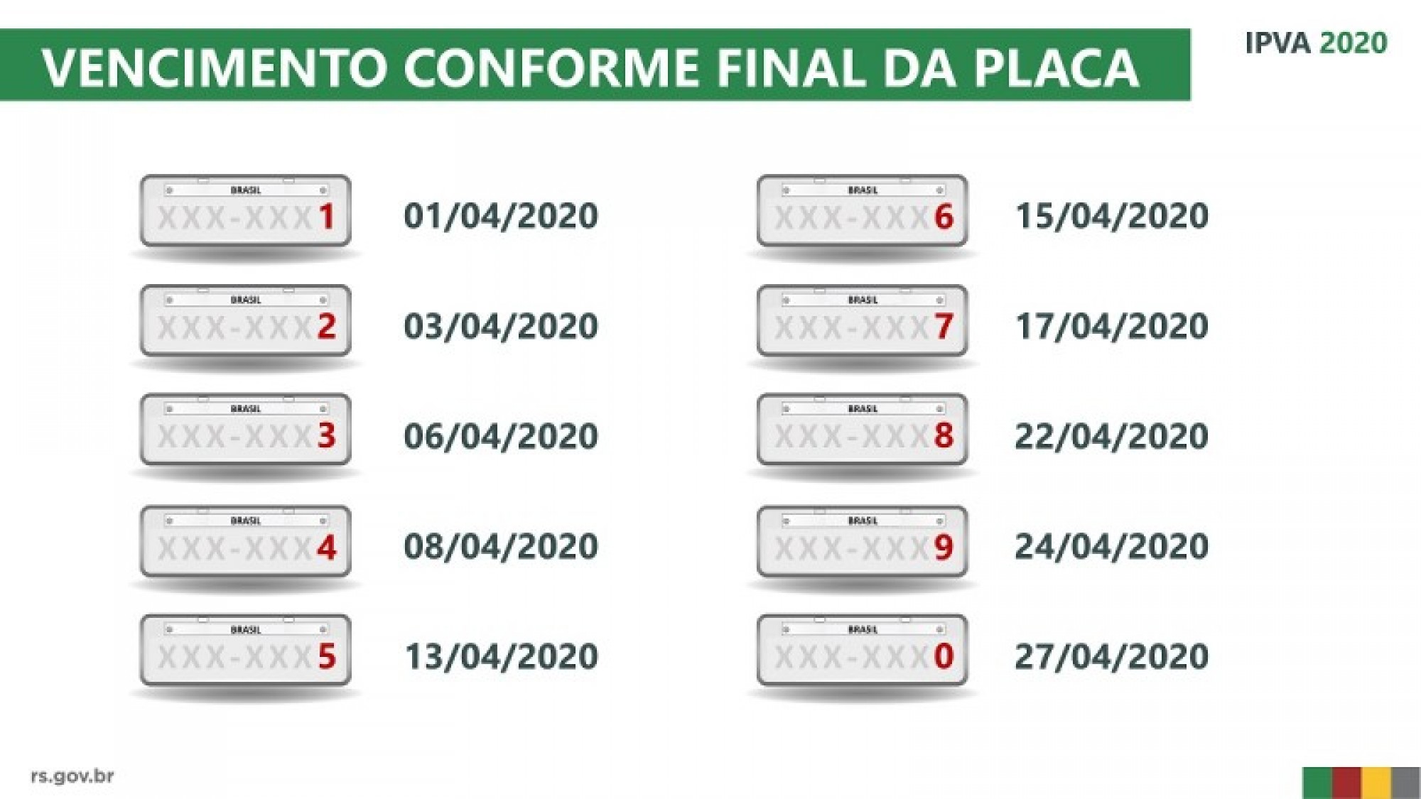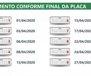 Nesta segunda-feira (13), é a data limite para placas com final 5. Na quarta-feira (15) vencerá as placas com final 6 e na sexta-feira (17) será a vez das placas com final 7.