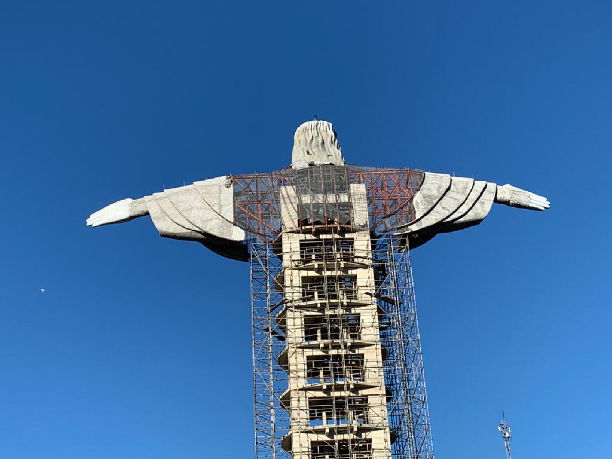 - Fica difícil dizer quanto falta, mas a ideia é entregar a estátua do Cristo pronta em dezembro. Tivemos sucesso no içamento dos braços e cabeça, era uma tarefa de muita tensão e que foi bem sucedida - comemora.