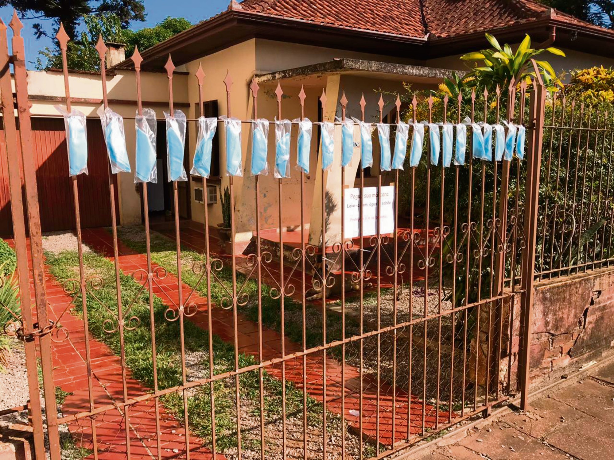 Este é o recado do casal muçunense, que prefere não ser identificado, exposto no portão da residência. O cartaz pendurado junto as máscaras ainda traz a mensagem “Pegue sua máscara. Lave com água e sabão”.