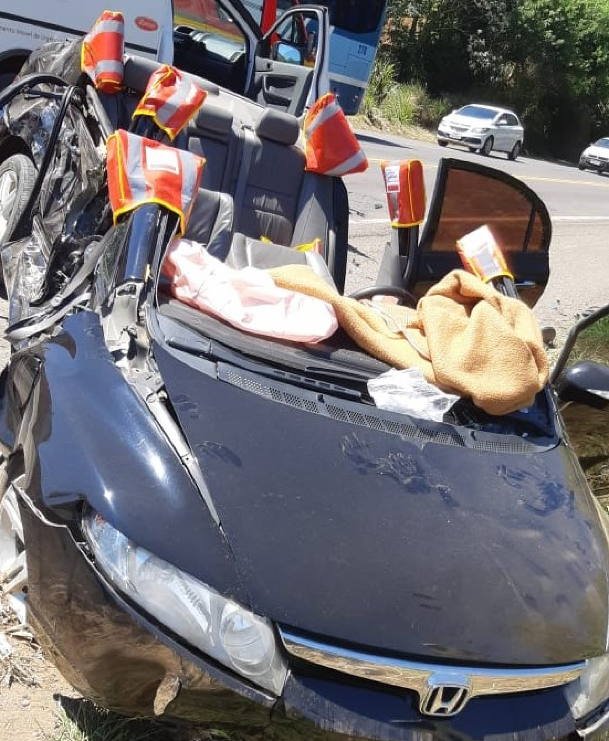 Já o condutor do carro teve escoriações leves e a caroneira ficou presa às ferragens. A mulher foi retirada das ferragens com o uso de desencarcerador pelo Corpo de Bombeiros e encaminhado pelo Samu para atendimento médico no Hospital Beneficente Santa Terezinha (HBST) de Encantado. O trânsito ficou interrompido durante o atendimento da ocorrência.