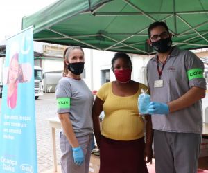 Entrega de máscara e guloseimas a crianças